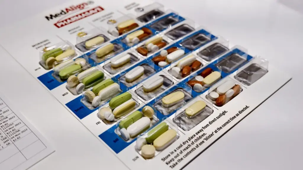 Color-coded packs that group all your medications by the time of day.
